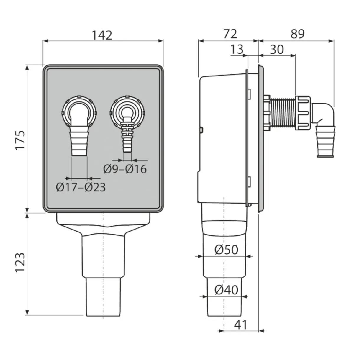Wasmachinesifon voor aansluiting van twee apparaten DN40 en DN50