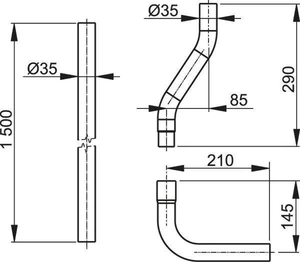 Meegeleverd: buis Ø35 mm, bocht Ø35 mm.