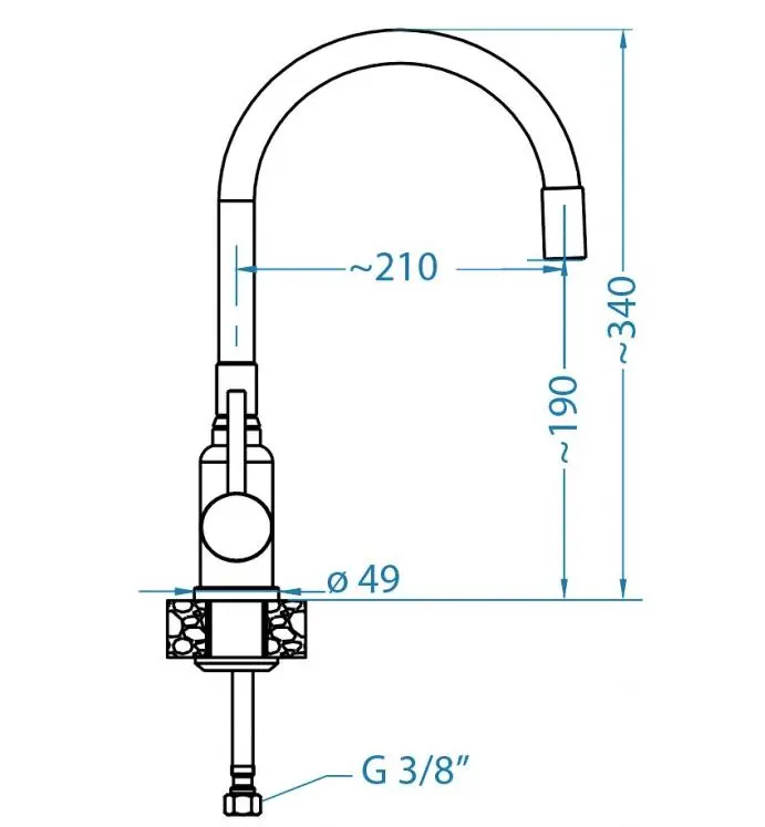 - kraan hoogte: 340 mm