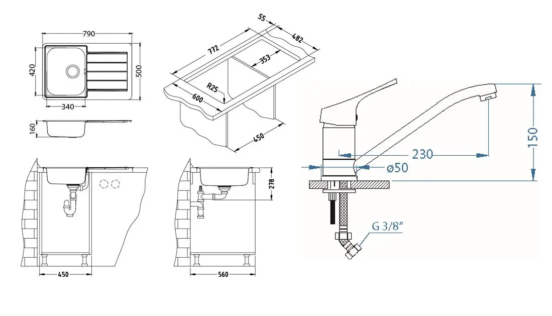 Set keukenspoelbak Line 80, kraan Riviera en cadeau