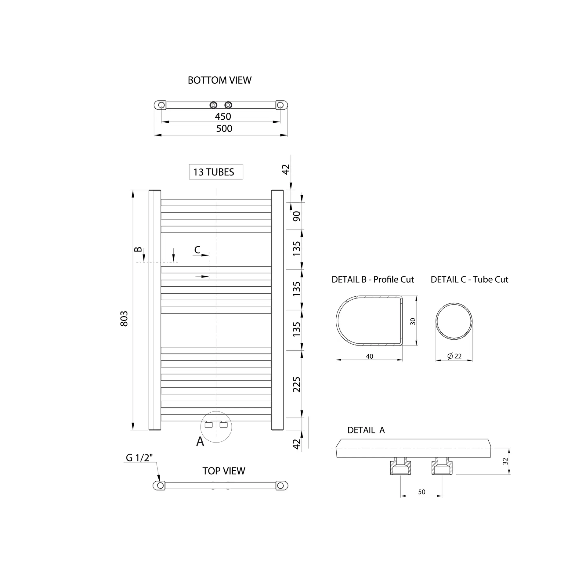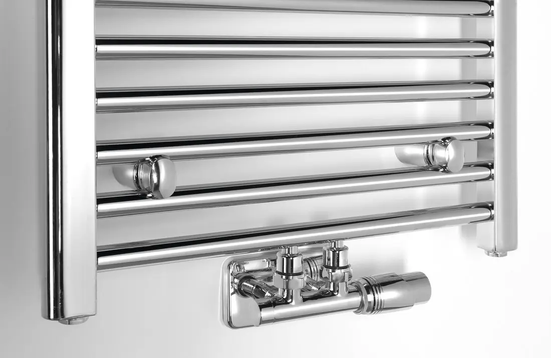 Verwarmingsstaaf en aansluitventielen worden niet bij de radiator meegeleverd.