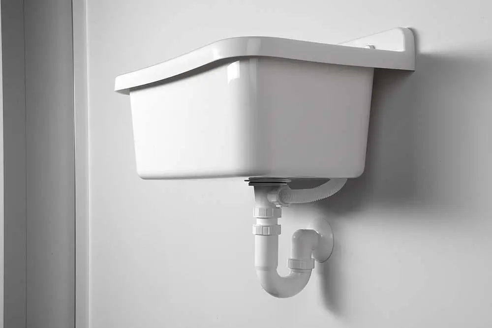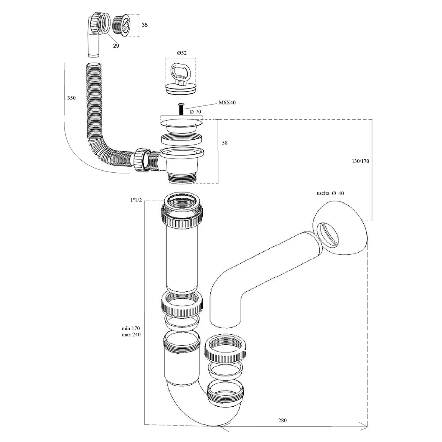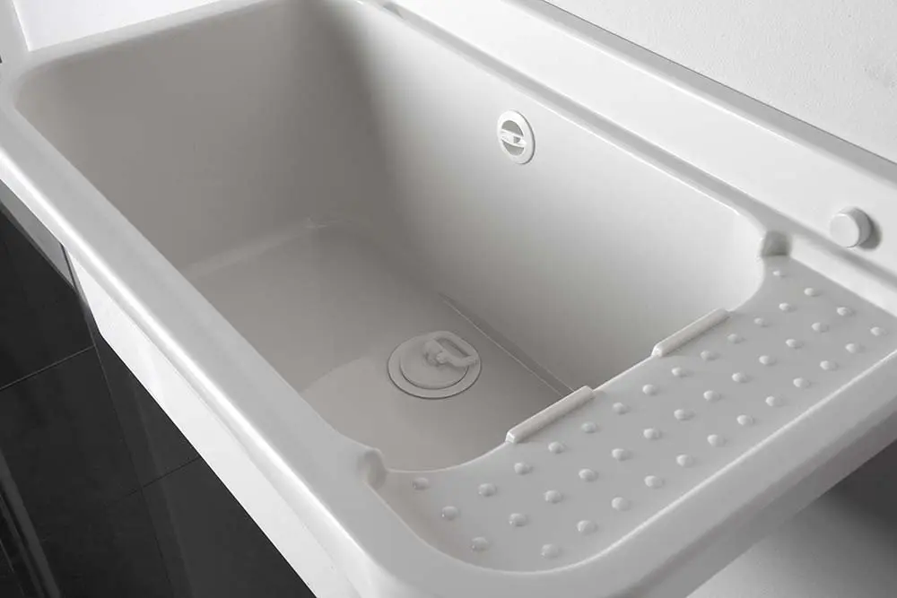 De afleg van de uitstortgootsteen is voorzien van de voorbereiding voor een kraangat, wat gebruikt van een staande keukenkraan mogelijk maakt. De locatie van het voorbereide gat is gemarkeerd op de technische tekening.
