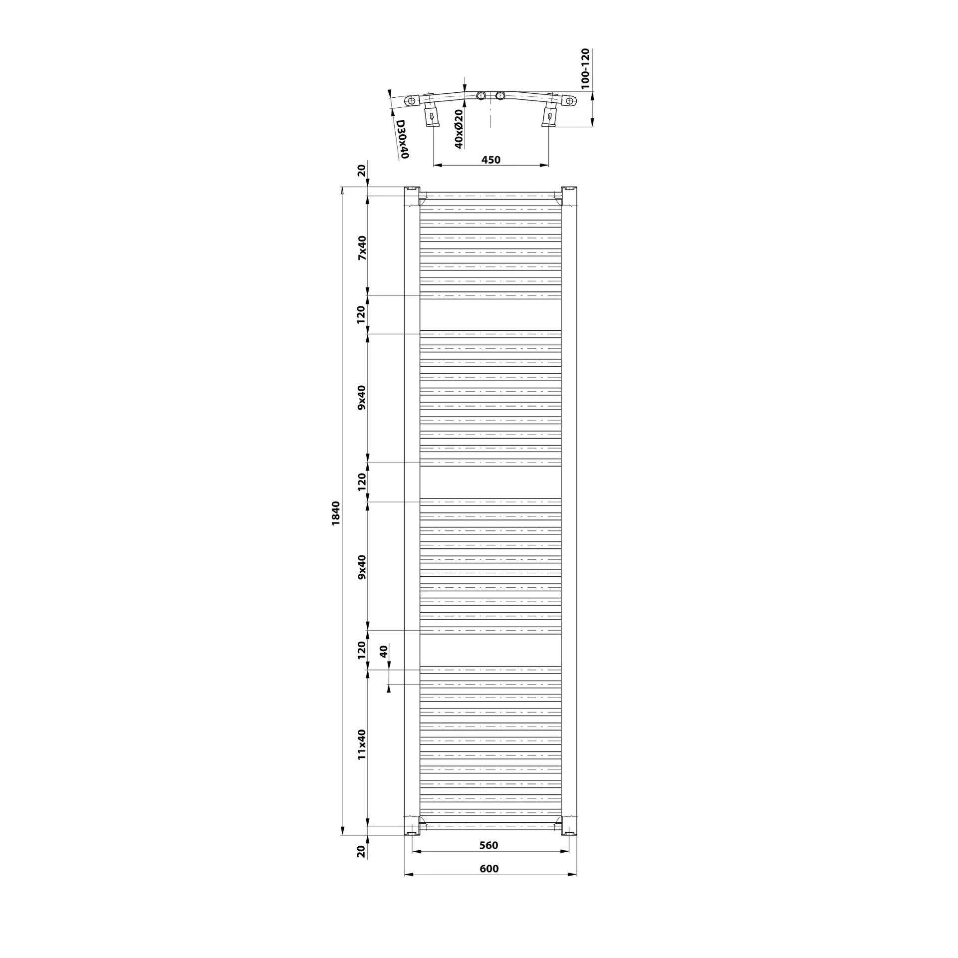 Verwarmingsstaaf en aansluitventielen zijn niet inbegrepen in het pakket.