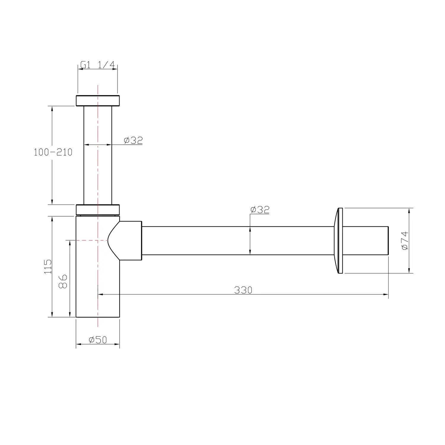 - diameter afvoer 32 mm