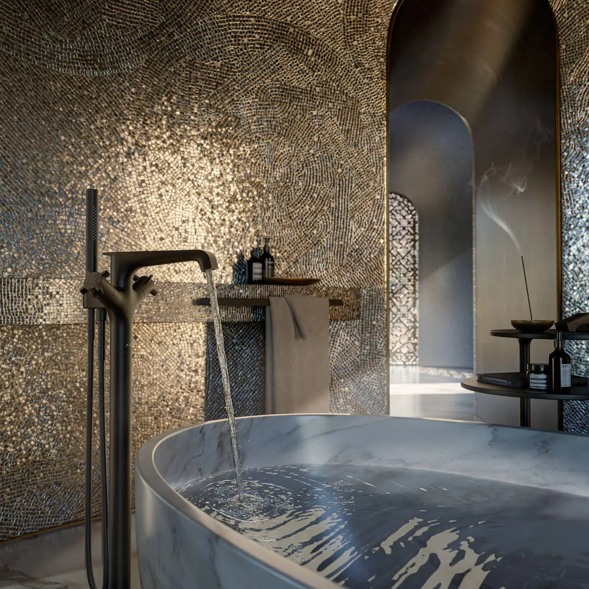 Thermostatische badkraan met handdouche, houder en doucheslang