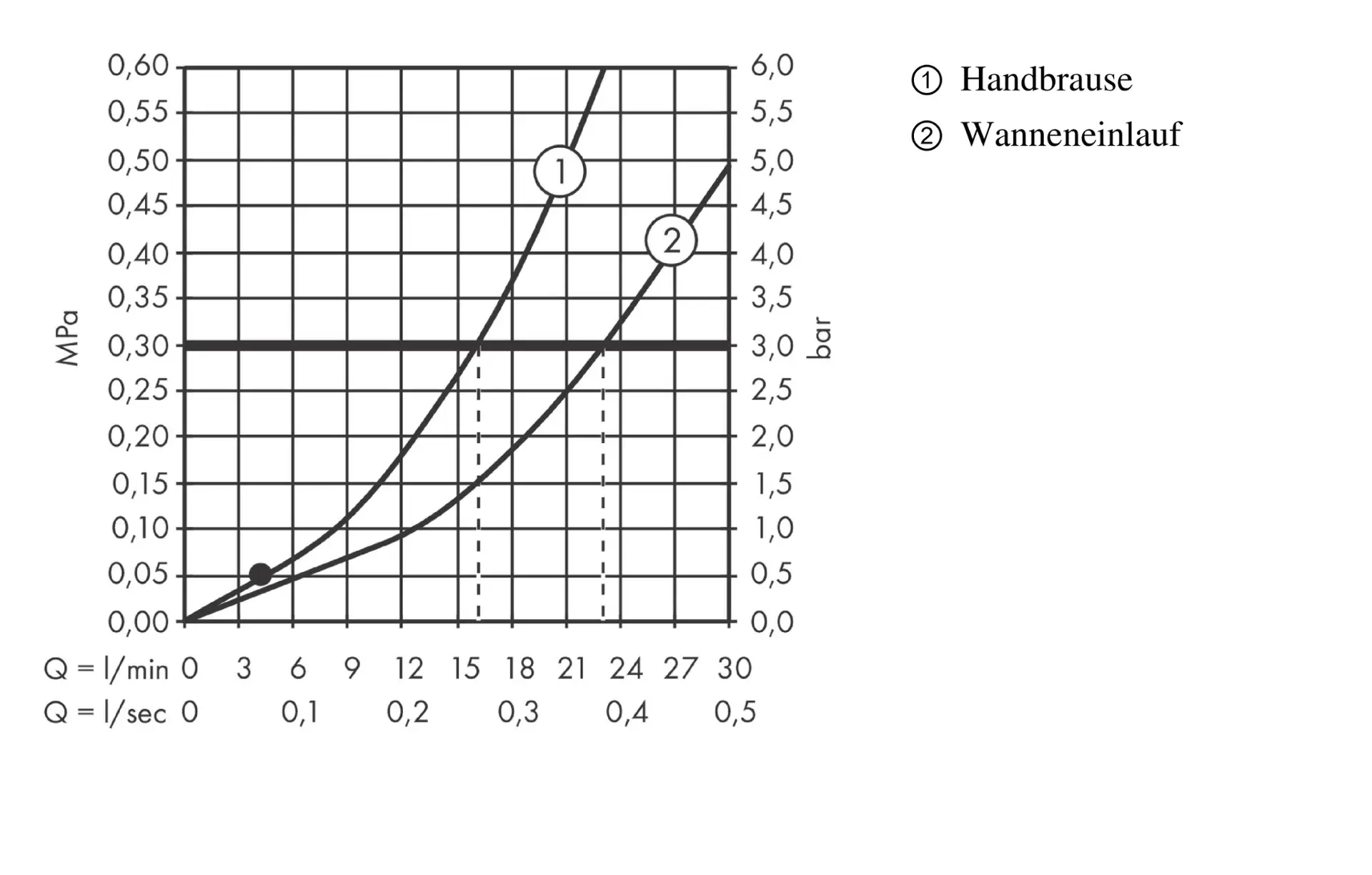 - doorstroming van de baduitloop bij 0,3 MPa: 22 l/min