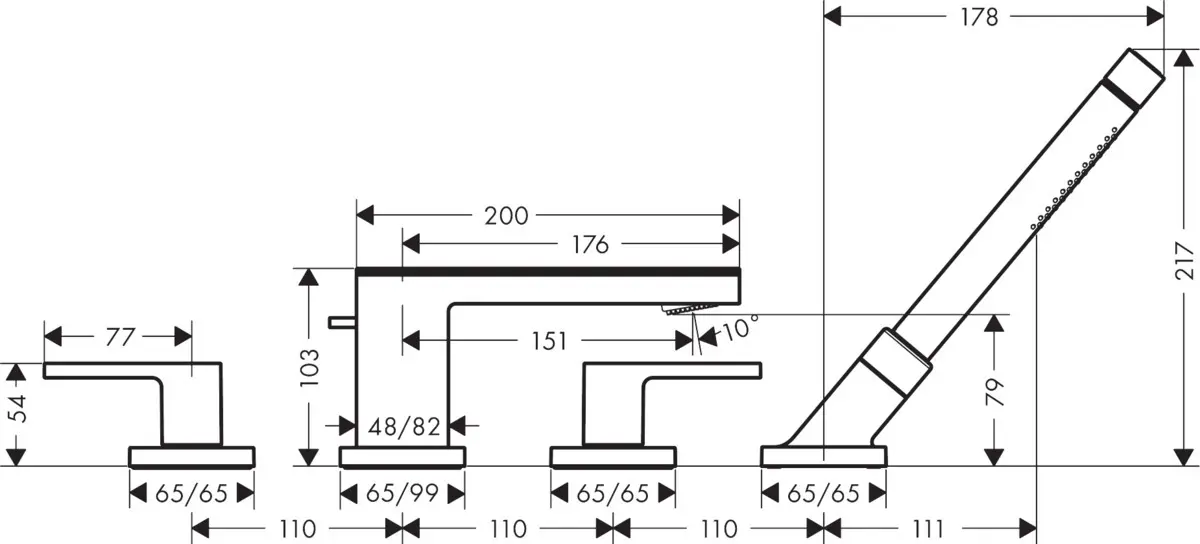 - maximale uittrekbare lengte van de handdouche: 1,10 m