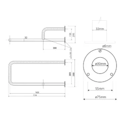 Sapho Badkamer Apparatuur – Handgreep Links 78 Cm, Roestvrij Staal XH532