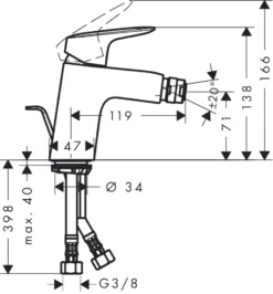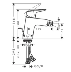 Hansgrohe Metropol – Bidetkraan Met Afvoergarnituur Push-Open, Geborsteld Zwart Chroom 32520340