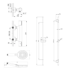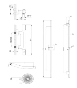 Kielle Oudee – Douche Set Met Thermostatische Kraan, Stang, Slang En Douchekop, Matzwart 20602SNT14