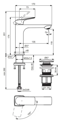 Ideal Standard Ceralife C – Wastafelkraan Met Click-Clack Afvoer, BlueStart, Chroom BE105AA