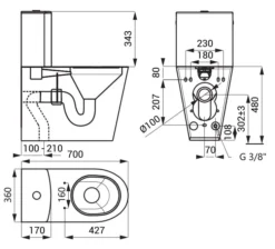 Sanela RVS Toiletten – Set Staand Toilet Met Fonteintje, Piezo, Antivandal, Mat RVS SLWN 28P