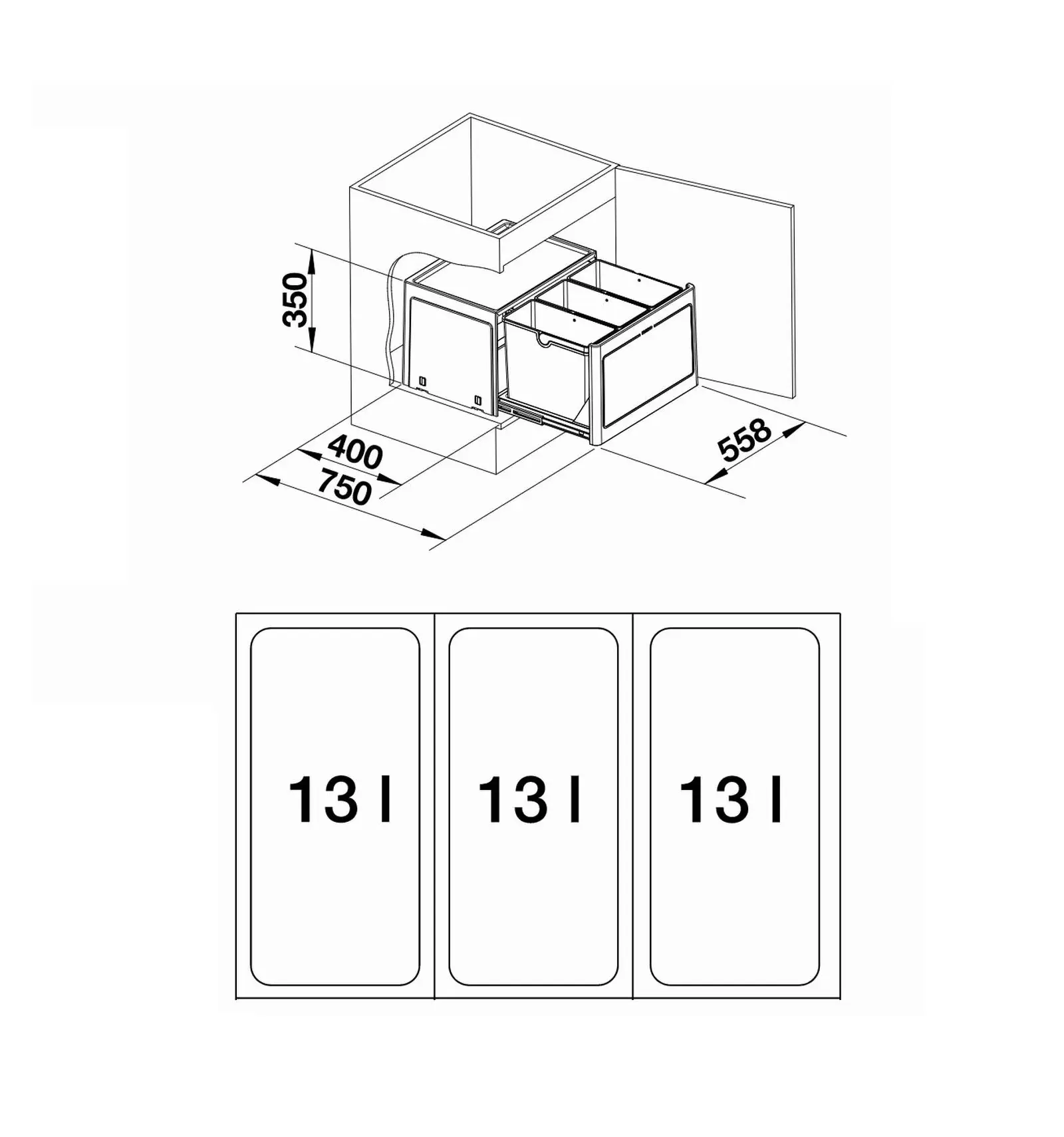 Ingebouwde afvalbak die automatisch wordt uitgeschoven bij openen van de deur