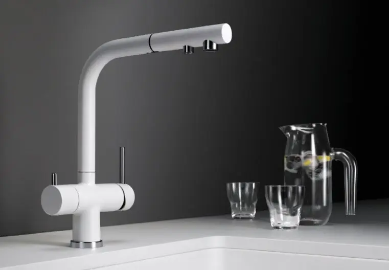 Eéngreeps keukenkraan met gewoon warm en koud en gefilterd water
