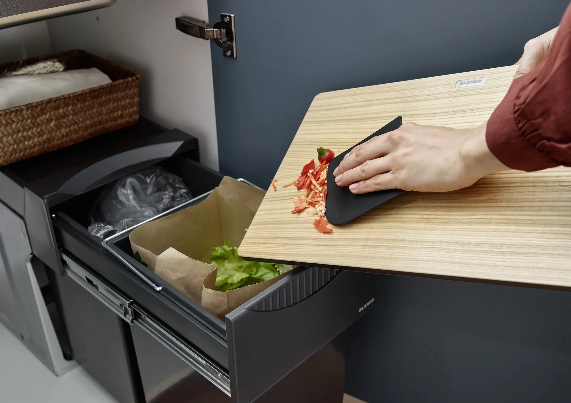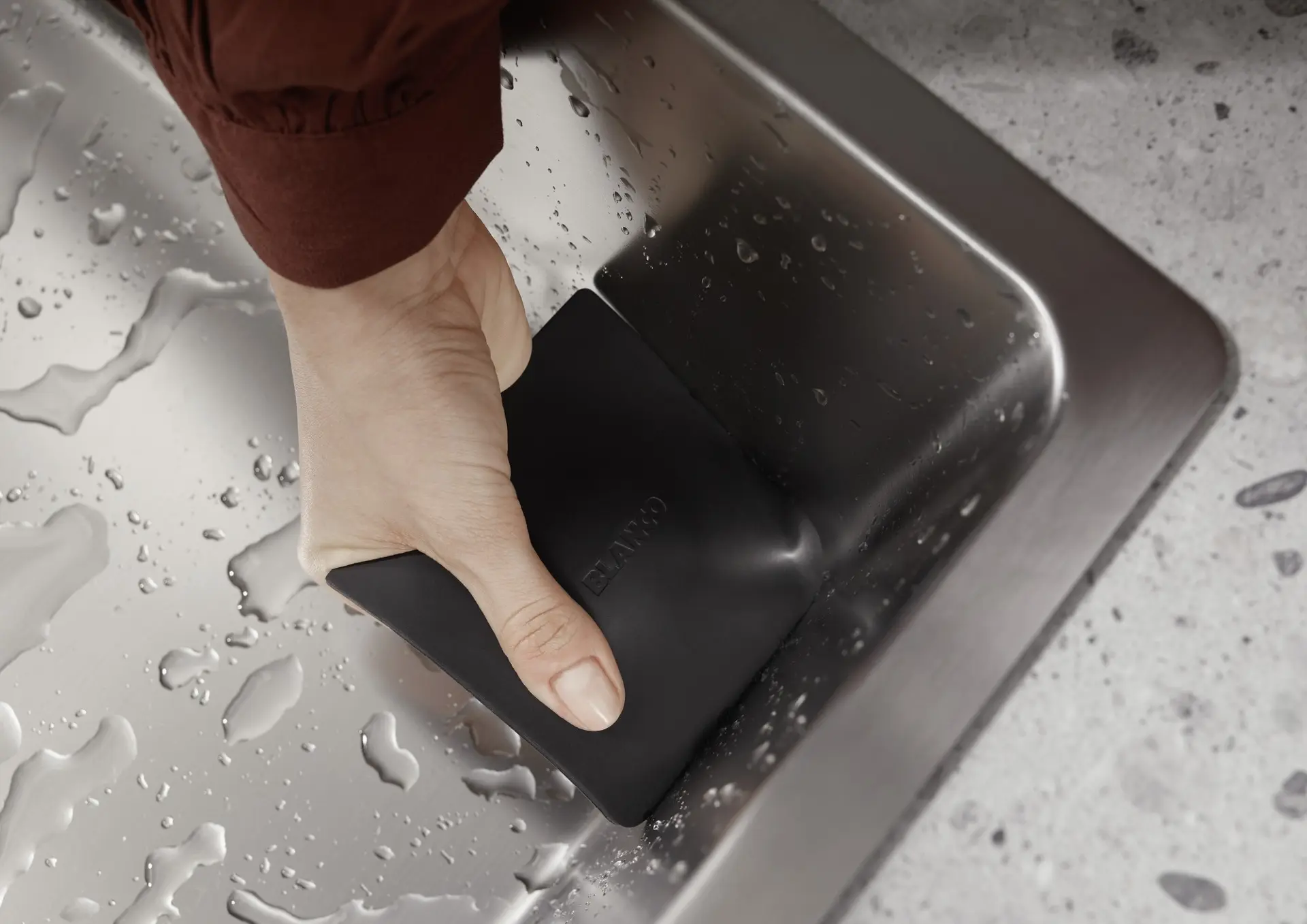 - universele wisser voor het wegvegen van water van het oppervlak en de hoeken van de gootsteen, resten van snijplanken, etensresten en meer