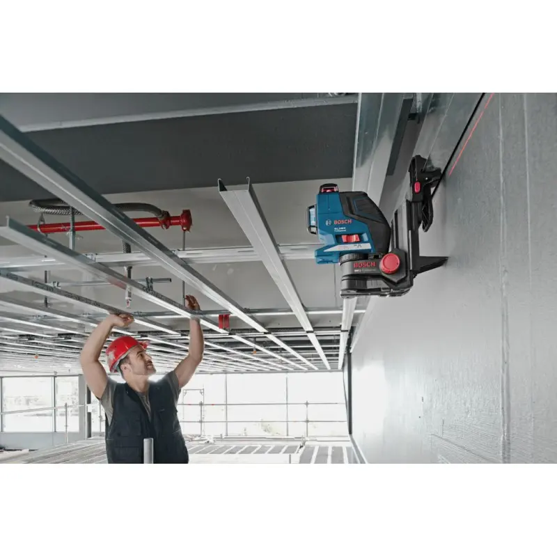 De GLL 3-80 C Professional lijnlaser wordt eenvoudig bevestigd en projecteert 3x 360° lijnen voor uitstekend zicht. De innovatieve CAL Guard-tracking en verbinding met de smartphone-app via Bluetooth® maakt bediening op afstand, contactloze afstelling en hoge nauwkeurigheid mogelijk. Krachtige LED’s zorgen voor een helder beeld en drie lijnen van 360° bieden gelijktijdige horizontale en verticale waterpasstelling voor zeer efficiënt werken.
