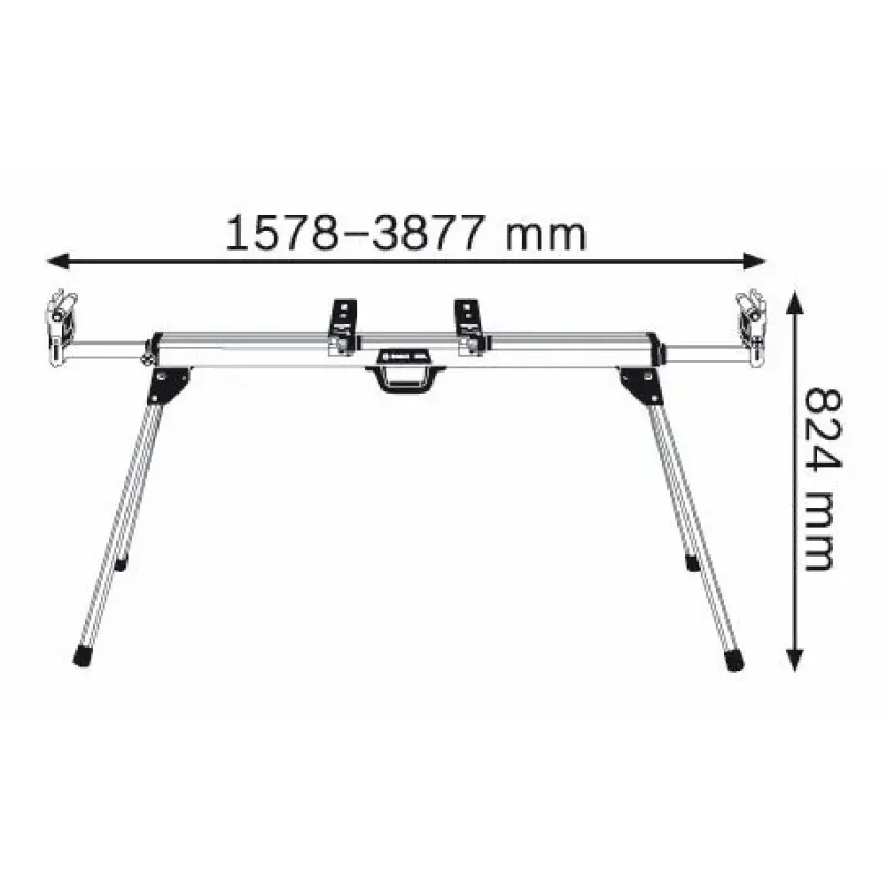 – Lengte van de werktafel met verlengstuk: 3.877 mm