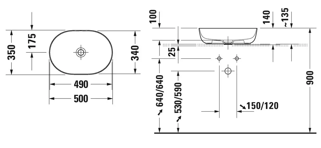 Wastafel voor opbouw op plaat/wastafelkast