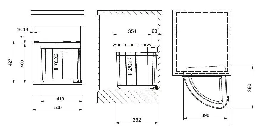 - plank boven de afvalemmer inbegrepen in de prijs van de afvalemmer