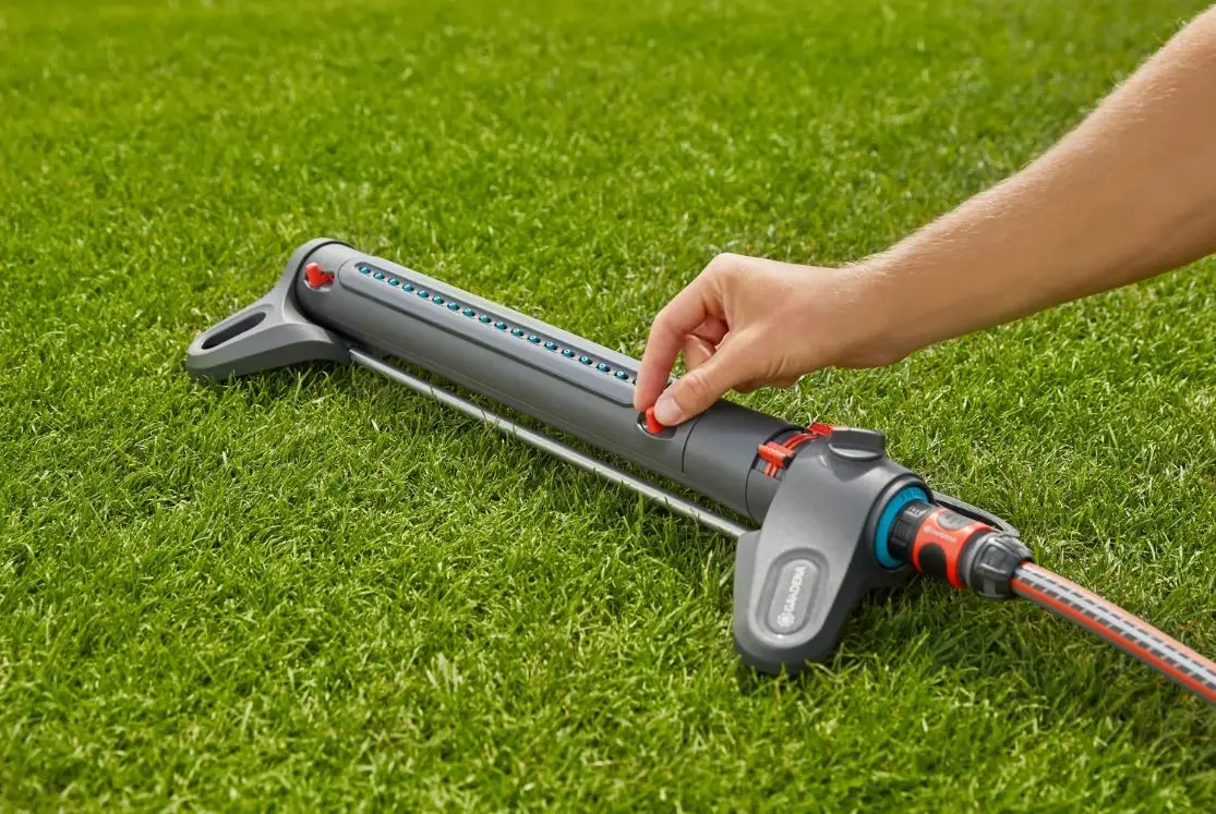 De bediening van de AquaZoom L is eenvoudig en intuïtief - Gebruik de schuifregelaars om het bereik (7-21 meter), de sproeibreedte (4-17 meter) en het waterdebiet afzonderlijk in te stellen