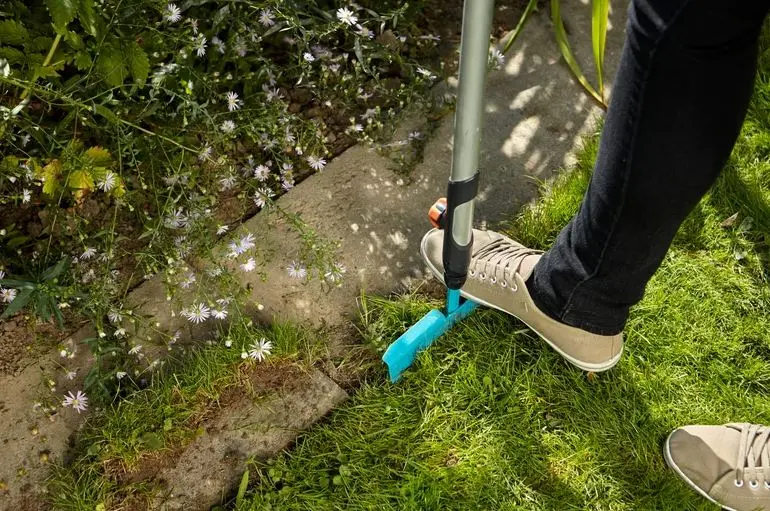 - Voor het bijwerken van de graskant en het scheiden van het bloembed van het gazon