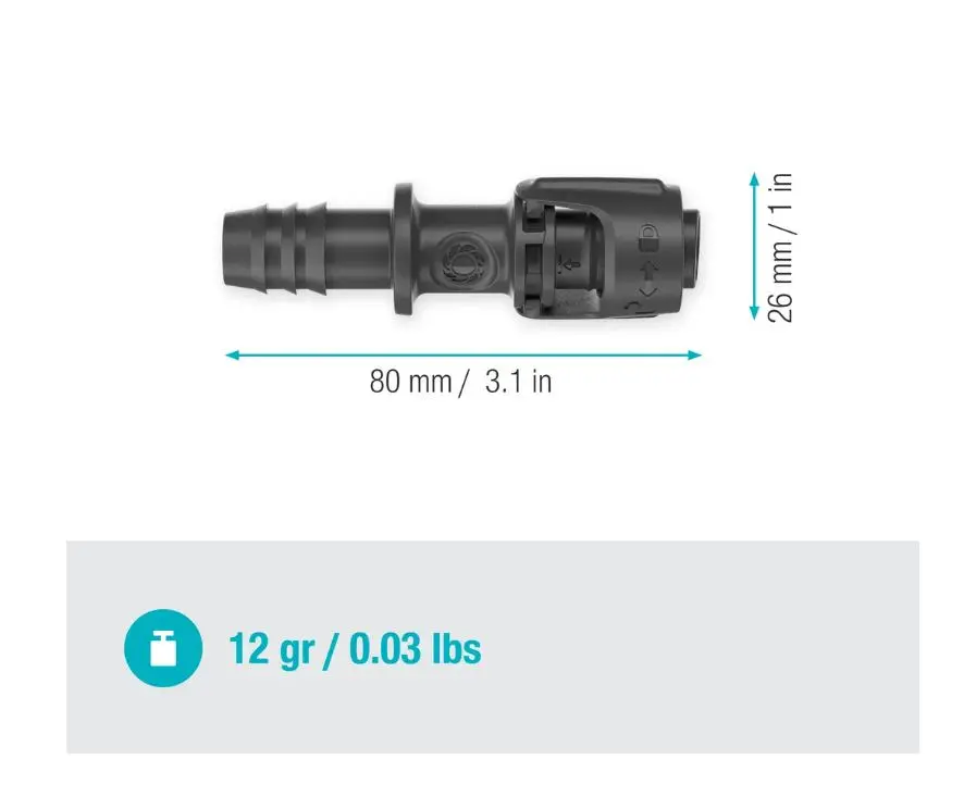 - De installatie van het MDS-vervangingsdeel is intuïtief en gemakkelijk te begrijpen dankzij de slimme symbolen Bij het aansluiten van de Micro-Drip-System-onderdelen op de GARDENA Universele Koppelingsuitgang hoort u een klik terug in de gesloten stand om de succesvolle aansluiting te bevestigen
