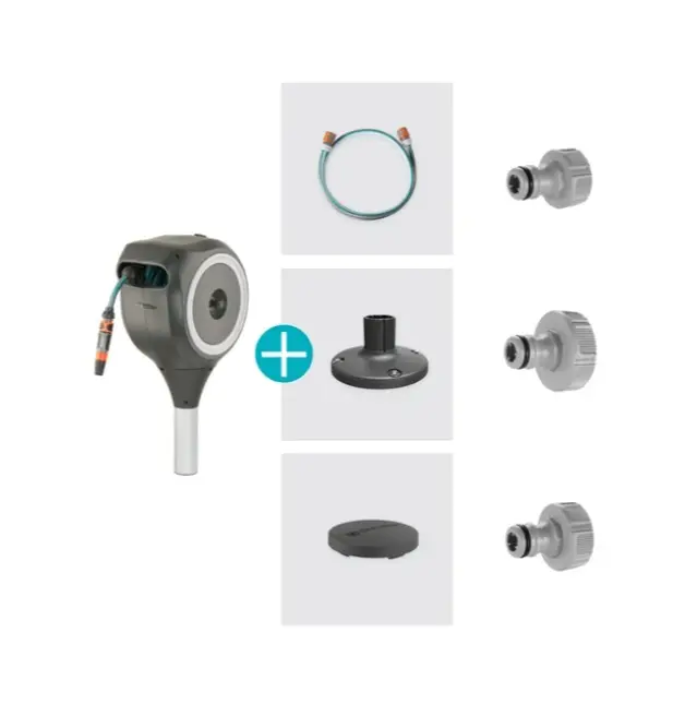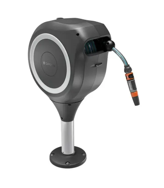 - RollControl-systeem – de waterslang wordt bij het afrollen op de gewenste lengte vergrendeld dankzij de praktische vergrendelingsstops
