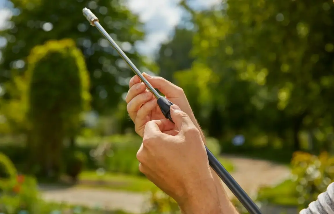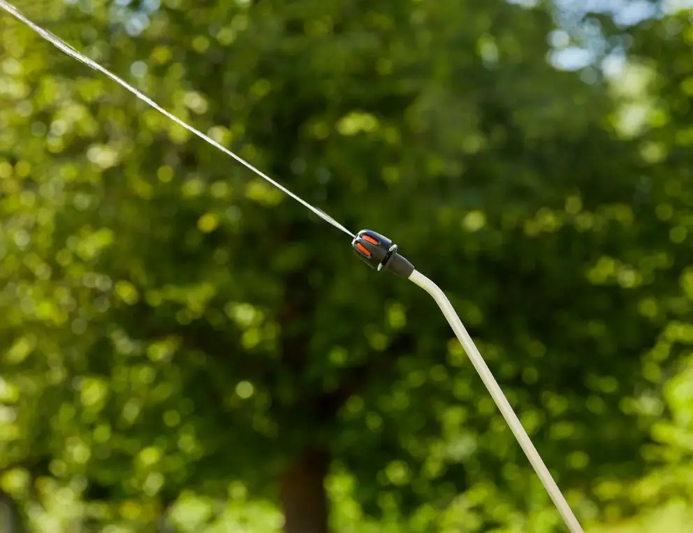 - De spuitdraad kan worden verlengd met , waardoor je spuitradius wordt vergroot zodat je zelfs de buitenste bladeren kunt bereiken