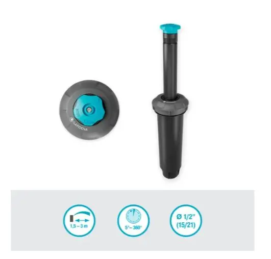 - Met de Pop-up Sproeier SD30 van GARDENA kun je automatisch kleinere, smalle gazons beregenen en een groen, gezond gazon behouden