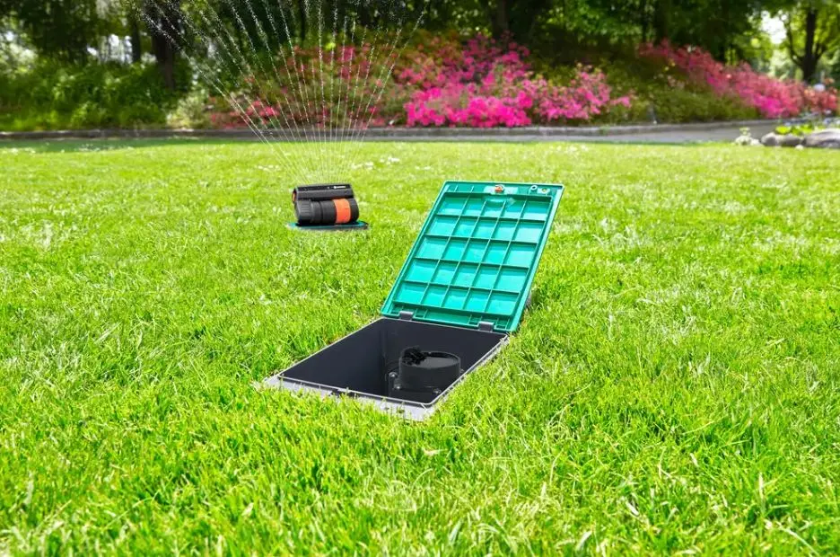 - In de GARDENA ventielbox V1 kan één 24 V besproeiingsventiel of één 9 V besproeiingsventiel ondergronds worden geïnstalleerd