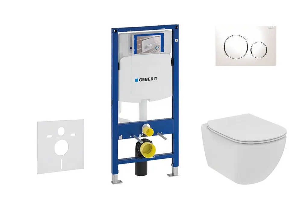 WC set met inbouwreservoir, toiletpot en WC-zitting Ideal Standard Tesi, bedieningsplaat Sigma20, wit/chroom