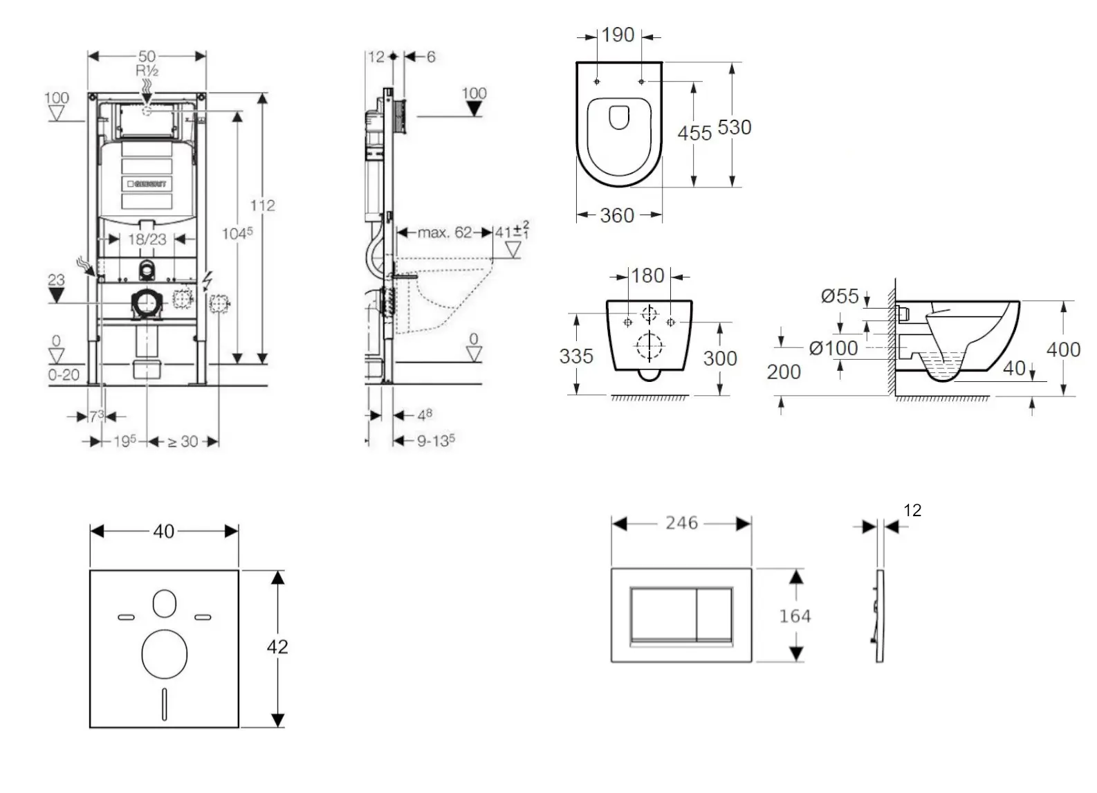 - voor hangend toilet met een maximale hoogte van 62 cm