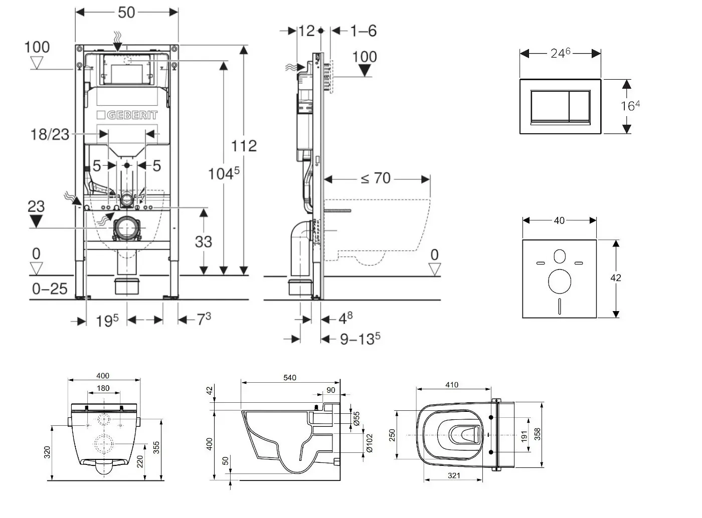 - voor wandtoiletten met aansluitmaten volgens EN 33 en een overlap tot 70 cm