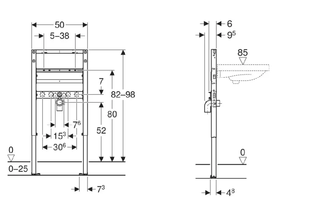 - Bevestigingsafstand voor wastafel 5-38 cm