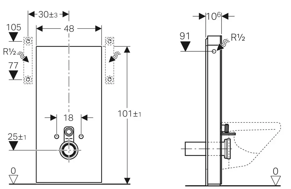 - bevestigingshoogte toilet keramiek 35 ± 1 cm