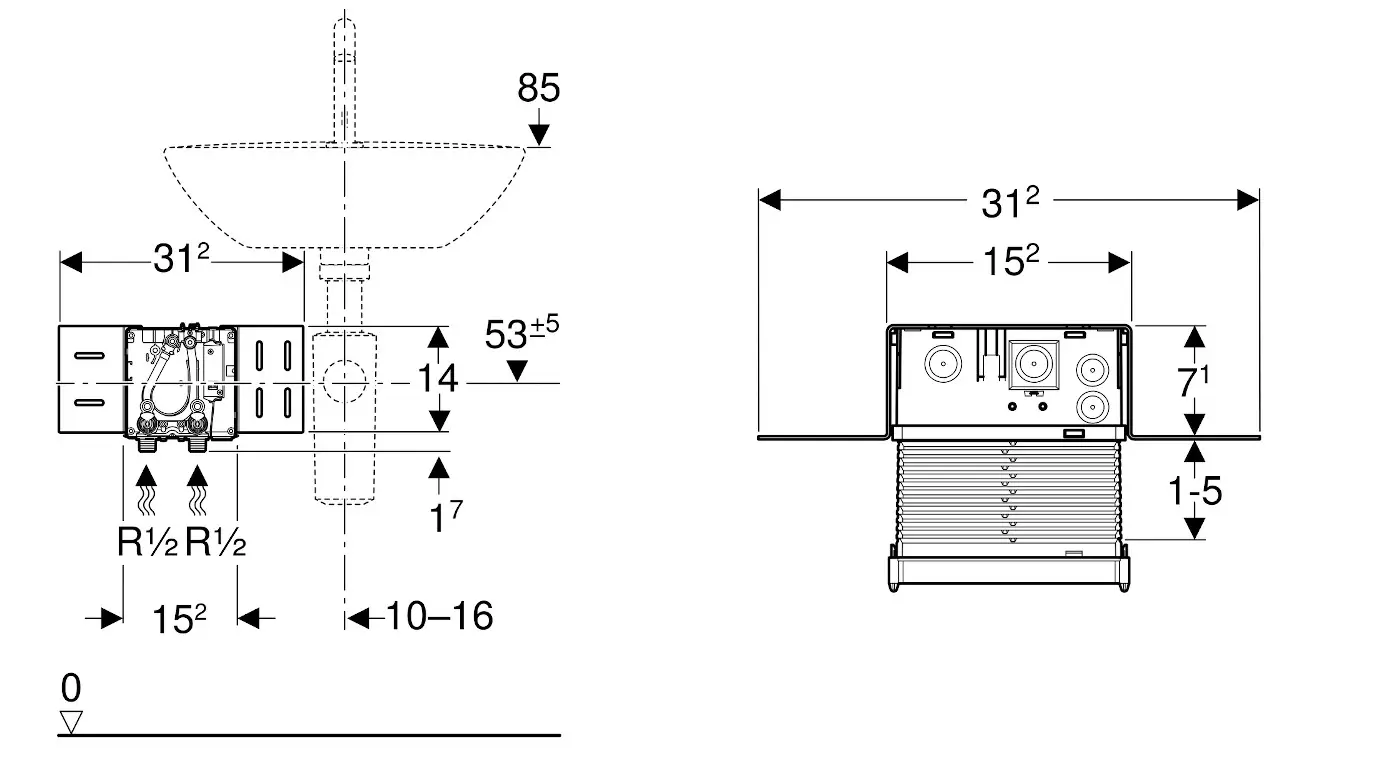 - Voor Geberit wastafelkranen, staand, met functionele inbouwdoos