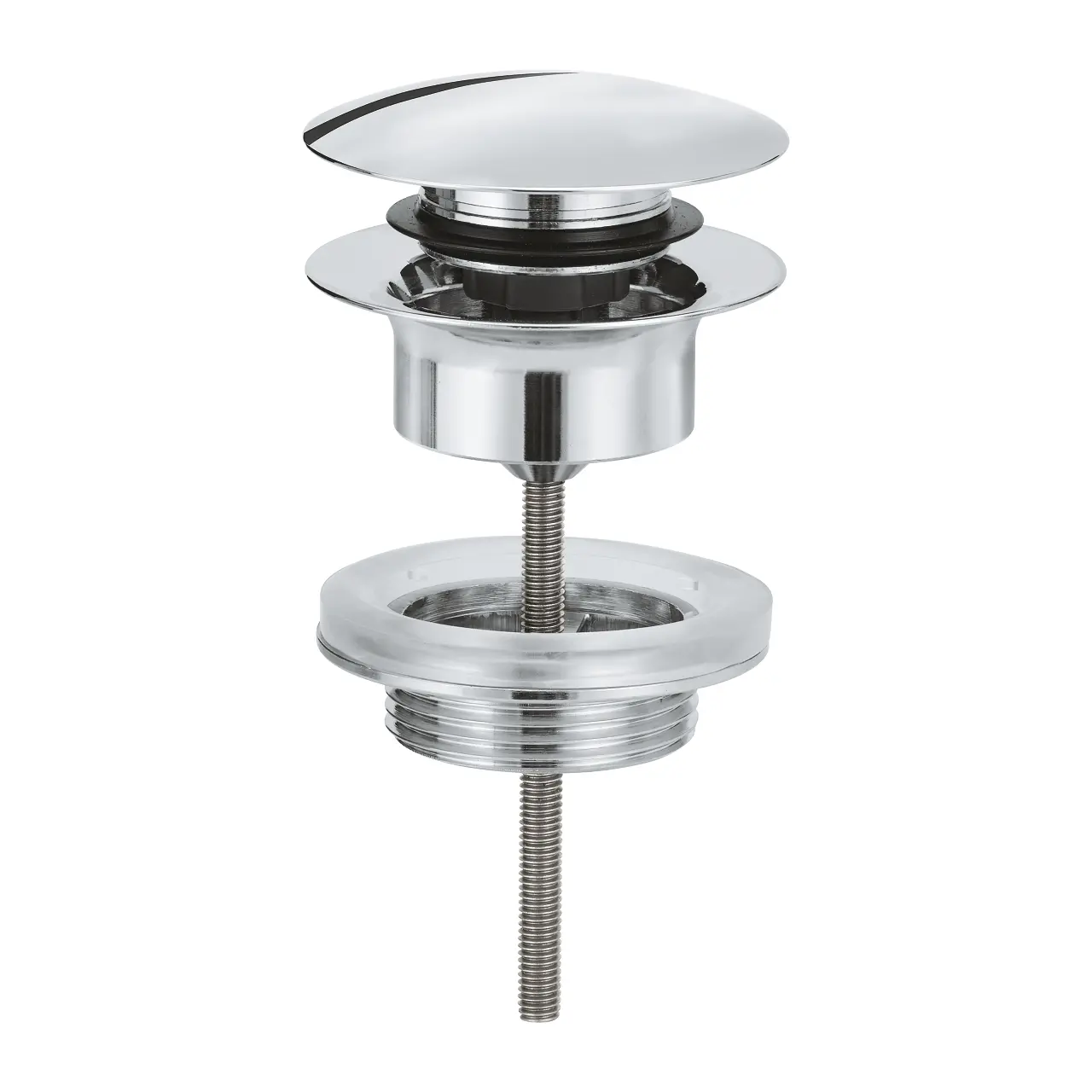 Deze GROHE wastafel plug staat voor nauwkeurige verwerking en kwaliteitsmaterialen. Hij is voorzien van een push-open mechanisme voor makkelijk gebruik. De afdekkap is afneembaar waardoor het onderhoud ook eens makkelijker is. Dankzij de glanzende chromen oppervlakken en het strakke design past hij in alle badkamerstijlen. De GROHE StarLight-beschermlaag betekent dan dat het oppervlak onderhoudsvriendelijk en duurzaam is. Kies voor GROHE en geniet van Duitse kwaliteit ten top!