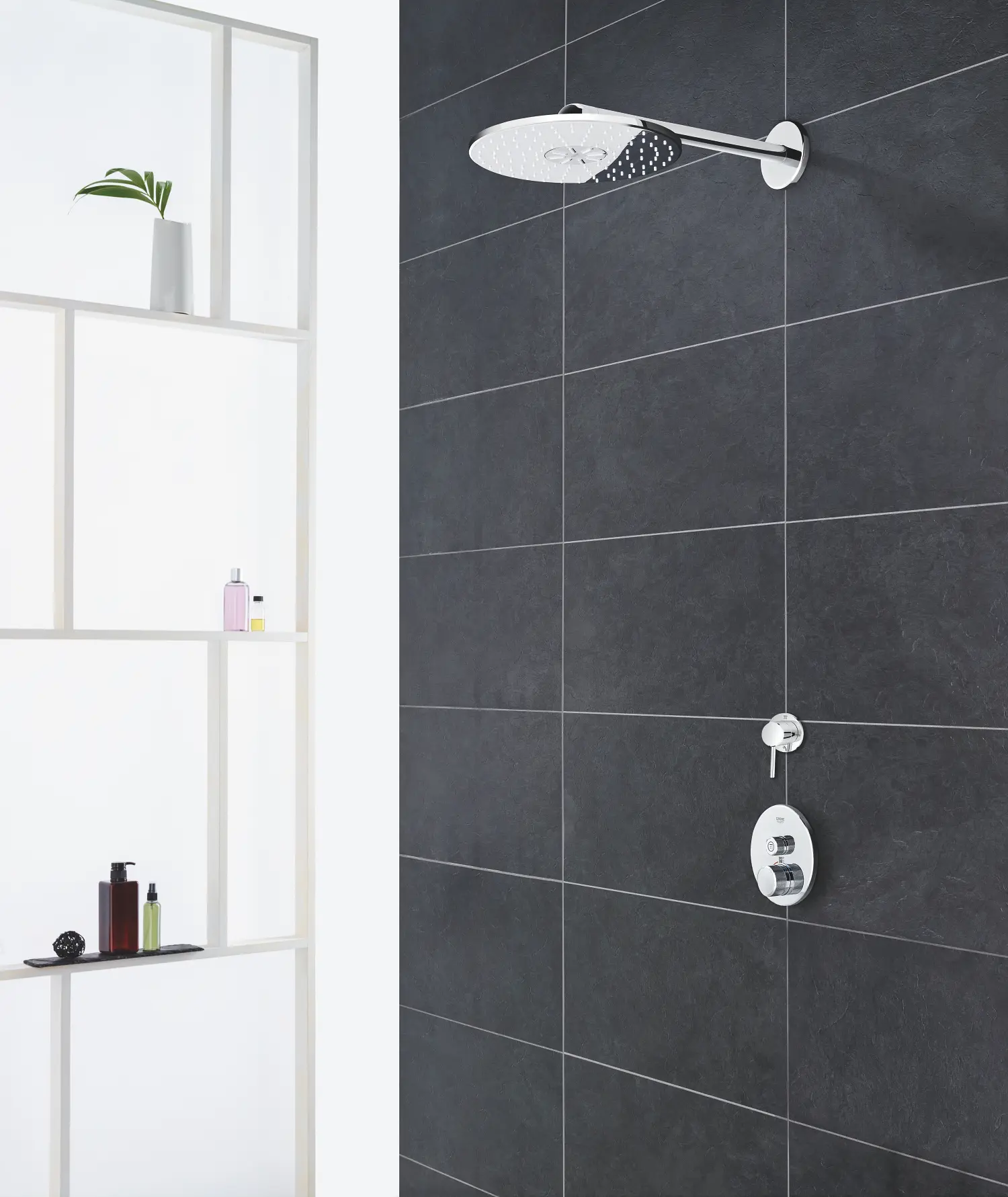 Gun jezelf met een professionele ontspanning dankzij deze GROHE Euphoria SmartControl hoofddouche. De hoofddouche zal bijvoorbeeld een perfecte aanvulling zijn voor je inbouw douchekraan en dankzij het moderne design met universele ronde lijnen zal de hoofddouche makkelijk in elke badkamerstijl naadloos passen. De hoofddouche biedt namelijk drie douchestralen: de zachte Rain-straal die op zomerregen lijkt, de zuinige SmartRain voor aangename ontspanning en de verkwikkende Jet-straal die garant staat voor een rustgevende massage. Tussen de stralen kun je trouwens moeiteloos schakelen middels de innovatieve knop in het midden van de douchekop. Voor ultieme prestaties zorgt niet alleen de genereuze grootte van namelijk 260 mm, maar ook de unieke GROHE DreamSpray-technologie die ervoor zorgt dat het water gelijk vanuit elk sproeigaatje stroomt. Je hoeft je zelfs geen zorgen te maken over de belasting van je gezinsbudget, omdat de ingebouwde GROHE EcoJoy-technologie het waterverbruik aanzienlijk vermindert en zo de kosten onder controle houdt. Je zult ook het eenvoudige onderhoud van de hoofddouche waarderen, waarvoor de GROHE SpeedClean-technologie samen met de GROHE StarLight-coating zorgt.