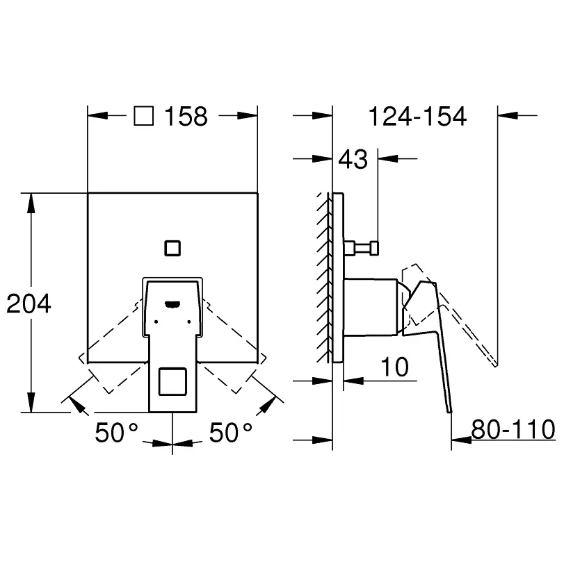 Installatie op GROHE Rapido SmartBox inbouwdeel, niet meegeleverd.