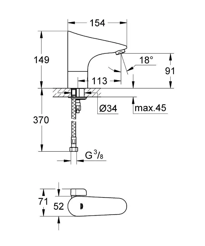 Infrarood elektronische wastafelkraan DN 15 met menging en instelbare temperatuurbegrenzer