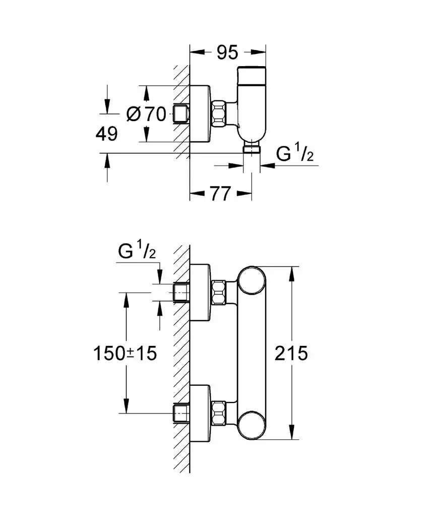 Zelfsluitende douchekraan DN 15 met menging en instelbare temperatuurbegrenzer
