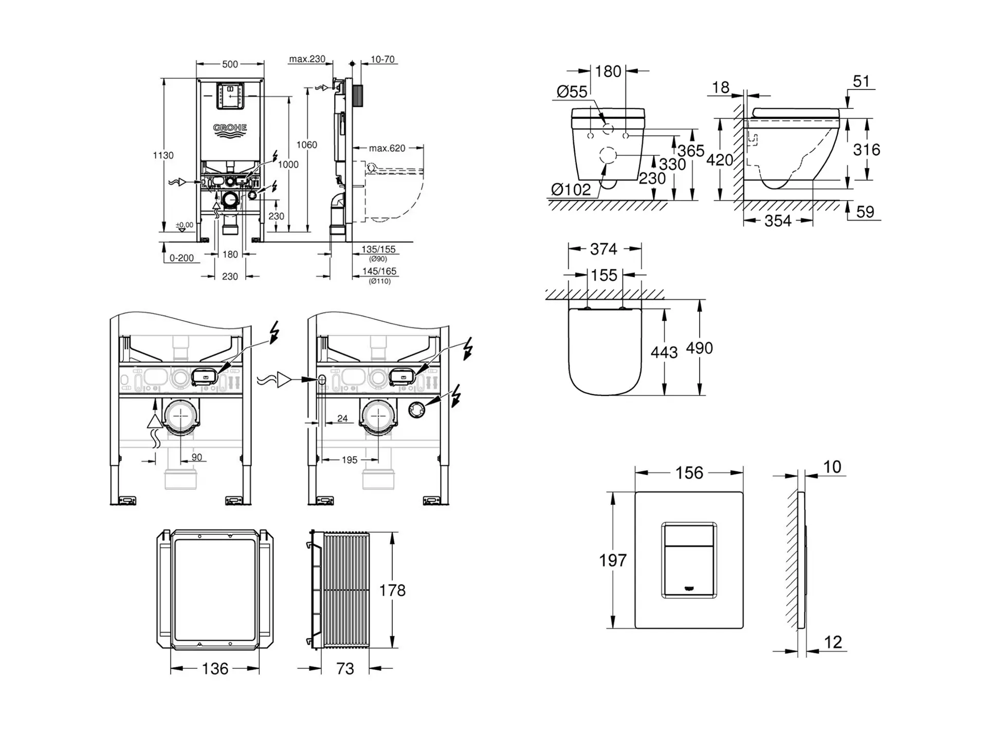 - geïntegreerde debietregelaar – de module kan dus worden gebruikt met randloze toiletten