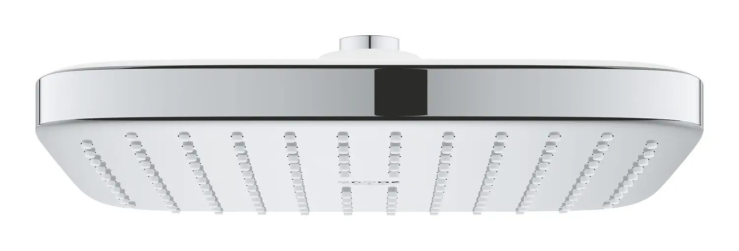 De GROHE Vitalio Comfort hoofddouche hult je in water en spoelt alle spanning en stress weg. De hoofddouche blinkt uit door zijn vierkant ontwerp, tijdloos design en topkwaliteit. De afmetingen zijn namelijk 250 x 250 mm. De douche is voorzien van één type douchestraal en dankzij de zuinige GROHE EcoJoy technologie stroomt er alleen 9,5 liter water per minuut. De douche is voorzien van een kogelgewricht met een draaihoek van ± 10°. Je kunt dus de stroomrichting altijd makkelijk instellen. In de hoofddouche zijn interne leidingen uitgerust met GROHE WaterGuide-technologie, wat zorgt voor een lange levensduur. Het stralende oppervlak is voorzien van de onderhoudsvriendelijke GROHE StarLight-toplaag en de GROHE SpeedClean betekent dat de siliconen nopjes ook eenvoudig te onderhouden zijn.