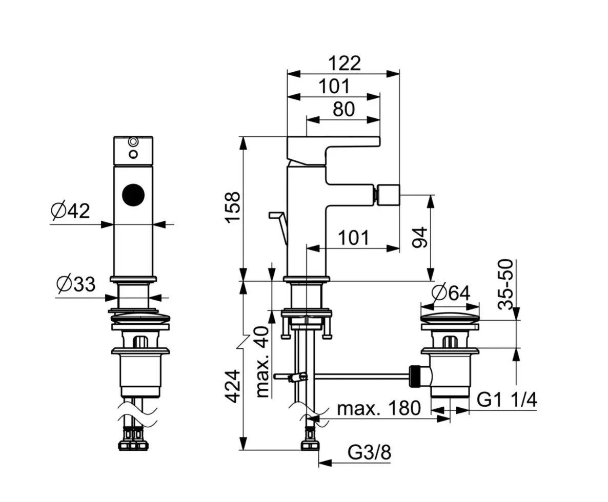- functie voor de instelling van maximale watertemperatuur en -straal