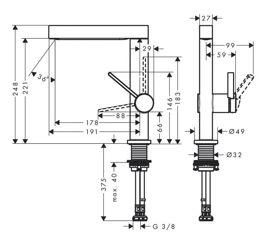 - max. doorstroming: 5 l/min (druk 3 bar)