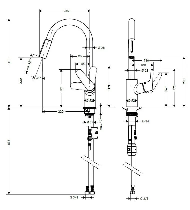 Deze moderne keukenmengkraan biedt allerlei andere geraffineerde functies, zoals het unieke Hansgrohe Boltic bevestigingssysteem die het vervelende wiebelen voorkomt. Dankzij de verticale positie van de hendel kan de keukenkraan feitelijk overal worden geplaatst. Het betrouwbare keramische binnenwerk in de exclusieve hansgrohe kwaliteit is speciaal ontworpen voor een lange levensduur. Gun jezelf deze ultramoderne, multifunctionele keukenkraan met uittrekbare sproeikop die je maximale bewegingsvrijheid biedt en het werk in de keuken vergemakkelijkt. Met hansgrohe ervaar je elke dag opnieuw puur waterplezier!