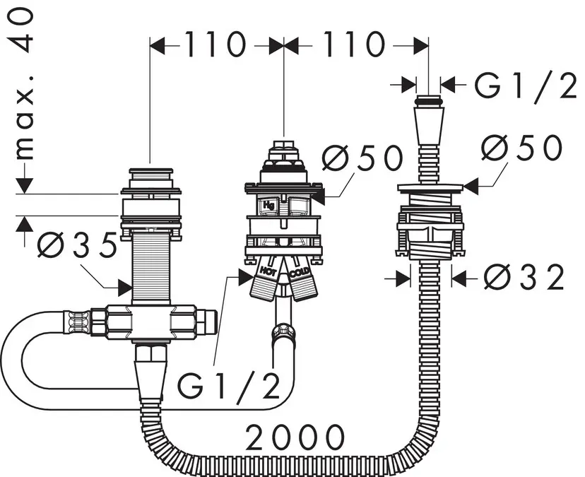 Maak je hansgrohe badrandkraan compleet met dit inbouwdeel voor driegats badrandmengkraan. De badrandmontage is een ideale oplossing als je je badkamer die persoonlijke en chiqué touch wil geven. Je bespaart bovenop niet alleen ruimte, maar je minimaliseert ook die onaangename verwondingen. Dit inbouwdeel is speciaal ontworpen voor een driegats model dat bestaat uit een baduitloop, douchekop en een bedieningshendel. De maximale uittreklengte van de handdouche is namelijk 1,60 m.
