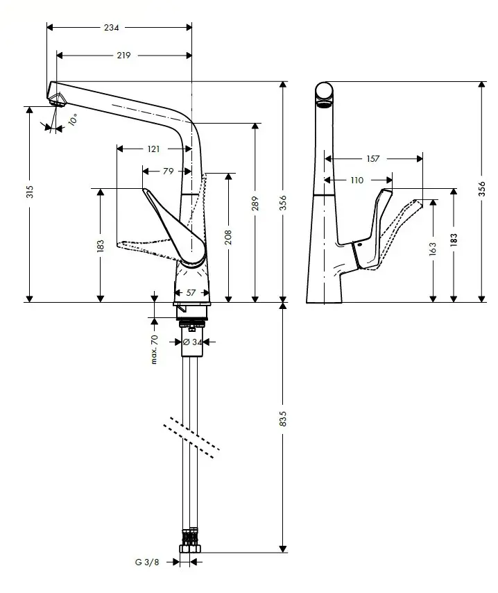 Geniet van het comfort dat uw nieuwe ComfortZone 320 u biedt. Die duidt de globale afstand aan tussen de uitloop van de kraan en de onderste rand ervan in millimeters en betekent heel veel ruimte voor de dagelijkse werkzaamheden in de keuken.