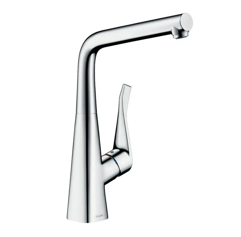 Maak uw dagelijkse werkzaamheden in de keuken eenvoudiger en verrijk de ruimte met een bijzonder designelement – kies voor de Hansgrohe Metris 320 1-greeps keukenkraan met draaibare uitloop, bestemd voor installatie voor het raam.