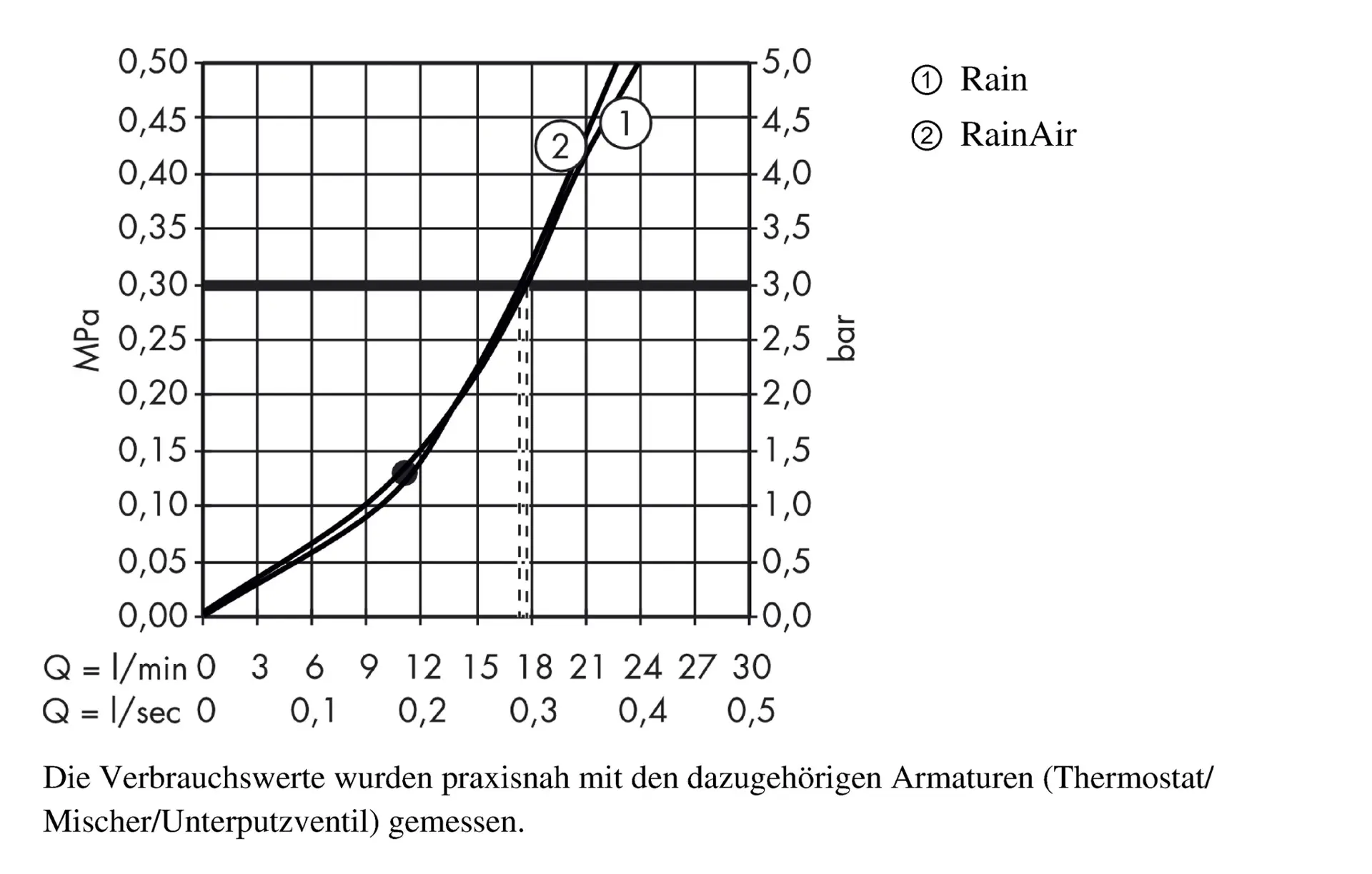 - doorstroming van de RainAir straal (bij 0,3 MPa): 17 l/min